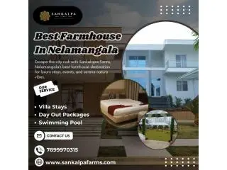 Sankalapa Farms is the Best Farmhouse in Nelamangala, Bangalore. We provide a luxurious farmhouse environment surrounded by natural greenery, fresh air and a peaceful setting. Our facilities provide a combination of modern features, spacious interiors and peaceful outdoor areas, ideal for a quiet vacation, celebration or family gathering. We ensure the comfort, enjoyment and refreshment of our guests. Our primary objective is to provide a relaxing, private and natural atmosphere. Visit Nelamangala's best resort for the perfect blend of luxury and nature.