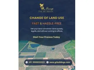 GR Group supports property owners in Bangalore by professionally managing land use change approvals, ensuring their land is legally compliant for residential, commercial, or industrial purposes with reliable and compliant assistance. Our process ensures full compliance with planning regulations, helping you avoid delays, penalties, and future legal complications. GR Group guides clients through documentation, authority approvals, and compliance with Karnataka land laws, ensuring clarity at every step. Our experienced team works to minimize delays and simplify complex procedures. GR Group is a trusted partner for Change of Land Use services in Bangalore, delivering transparent, efficient, and fully compliant solutions that enable smooth and well-planned property development.