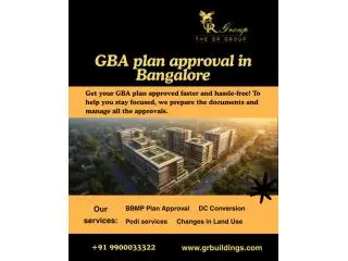 GR Group offers expert services for GBA plan approval in Bangalore, helping builders and developers ensure their construction projects comply with all necessary building and zoning regulations. Our experienced team oversees the entire approval process, including documentation, submission, and coordination with the relevant authorities. We strive to make this process seamless, transparent, and time-efficient, allowing our clients to focus on executing their projects without administrative stress. GR Group guarantees prompt and easy GBA plan approvals through our extensive knowledge of local laws and commitment to quality, enabling you to proceed with your development plans with confidence while adhering to Bangalore's urban standards.