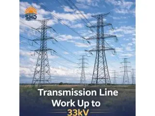 Transmission line work up to 33kv means design, erection, testing and commissioning of overhead or underground electrical line, carrying power up to 33000 volts.