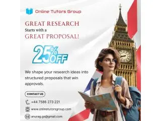 Online Tutors Group delivers a high-quality research proposal writing service in London, UK, dedicated to supporting students in reaching exceptional academic performance. We work closely with each student to understand their subjects and research requirements. Our team ensures every proposal is well-structured, thoroughly researched, and meets university standards. We guide you in selecting the right topic that aligns with your academic goals. Our writers craft proposals with clarity, depth, and strong scholarly value. We support you throughout the process, from drafting to final submission, making it stress-free and efficient. Contact Online Tutors Group today to secure a professional research proposal that stands out!
