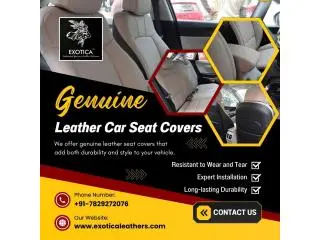 Exotica Leathers makes high-quality Genuine Leather Car Seat Covers that look great, last a long time and give your car unmatched comfort. We use carefully selected genuine leather to ensure luxurious looks and long-lasting performance. Our seat covers are custom-fit, easy to maintain and stylish upgrades to any car interior. Exotica Leathers focuses on quality craftsmanship, expert stitching and modern designs to match your personality and driving comfort. Our products not only enhance aesthetics but also protect your car seats from daily wear and tear. Call Exotica Leathers today and give your car a classy leather makeover.